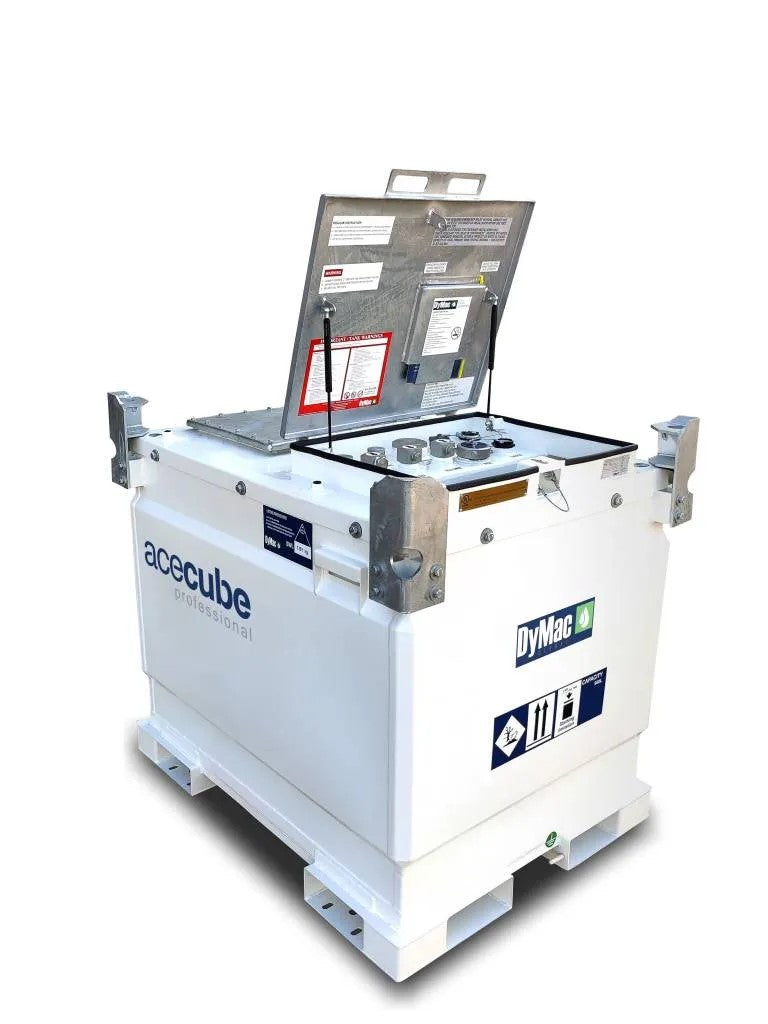 La gamma di serbatoi AceCube Professional presenta un design con tasche per forche bidirezionali e piastre deflettenti interne per ridurre il movimento del liquido durante il trasporto. Ogni serbatoio ha un serbatoio interno completamente rimovibile per facilitare la manutenzione ordinaria. Gli angoli impilabili fungono anche da ganci di sollevamento, garantendo una maneggevolezza totale. Sotto il coperchio principale si trovano gli attacchi e raccordi posizionati strategicamente, che si aprono su un ampio vano per le attrezzature.