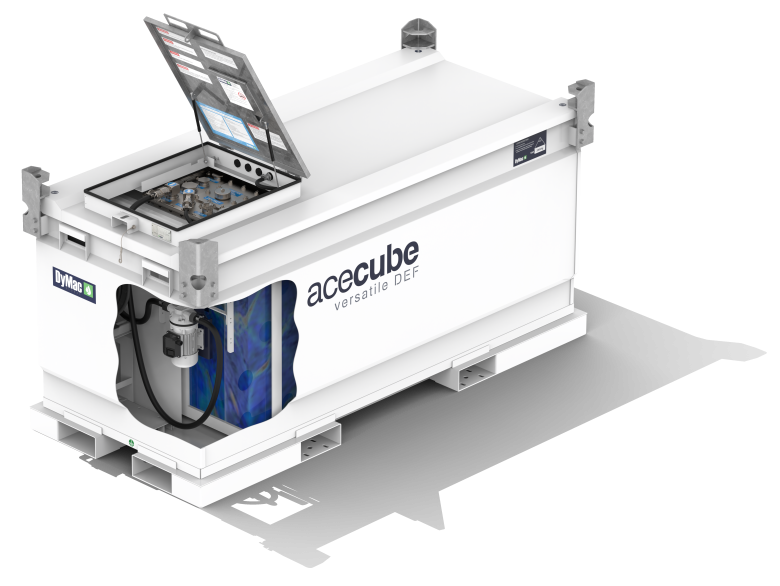 La gamma di serbatoi per liquidi trasportabili AceCube Versatile DEF ACV-DEF-1650L è dotata di una piastra con raccordi in acciaio inox ed è progettata per fornire AdBlue in grandi quantità a più motori Stage V contemporaneamente.