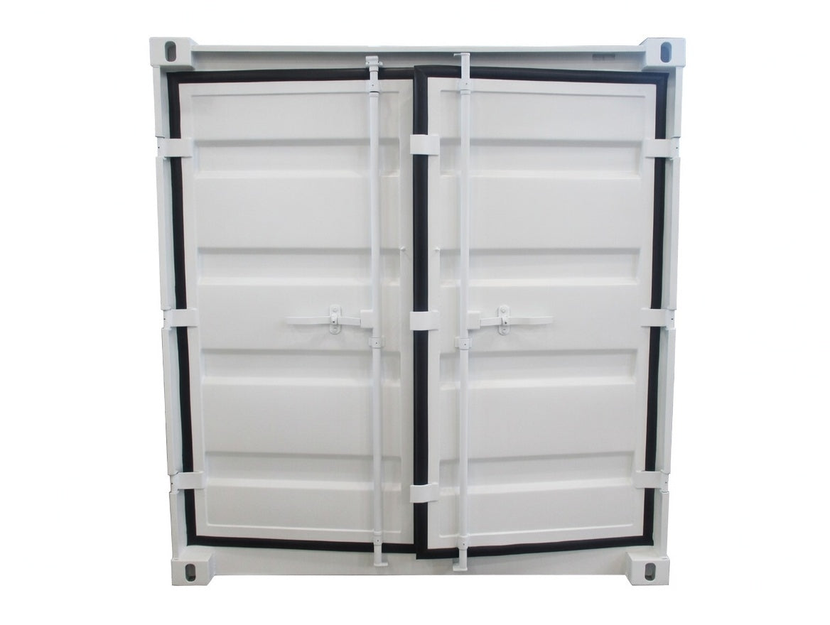 Porta del contenitore a 2 ante, realizzata in lamiera grecata in acciaio al carbonio con guarnizione perimetrale in gomma, con n° 2 barre di apertura, chiusura e bloccaggio verniciate .