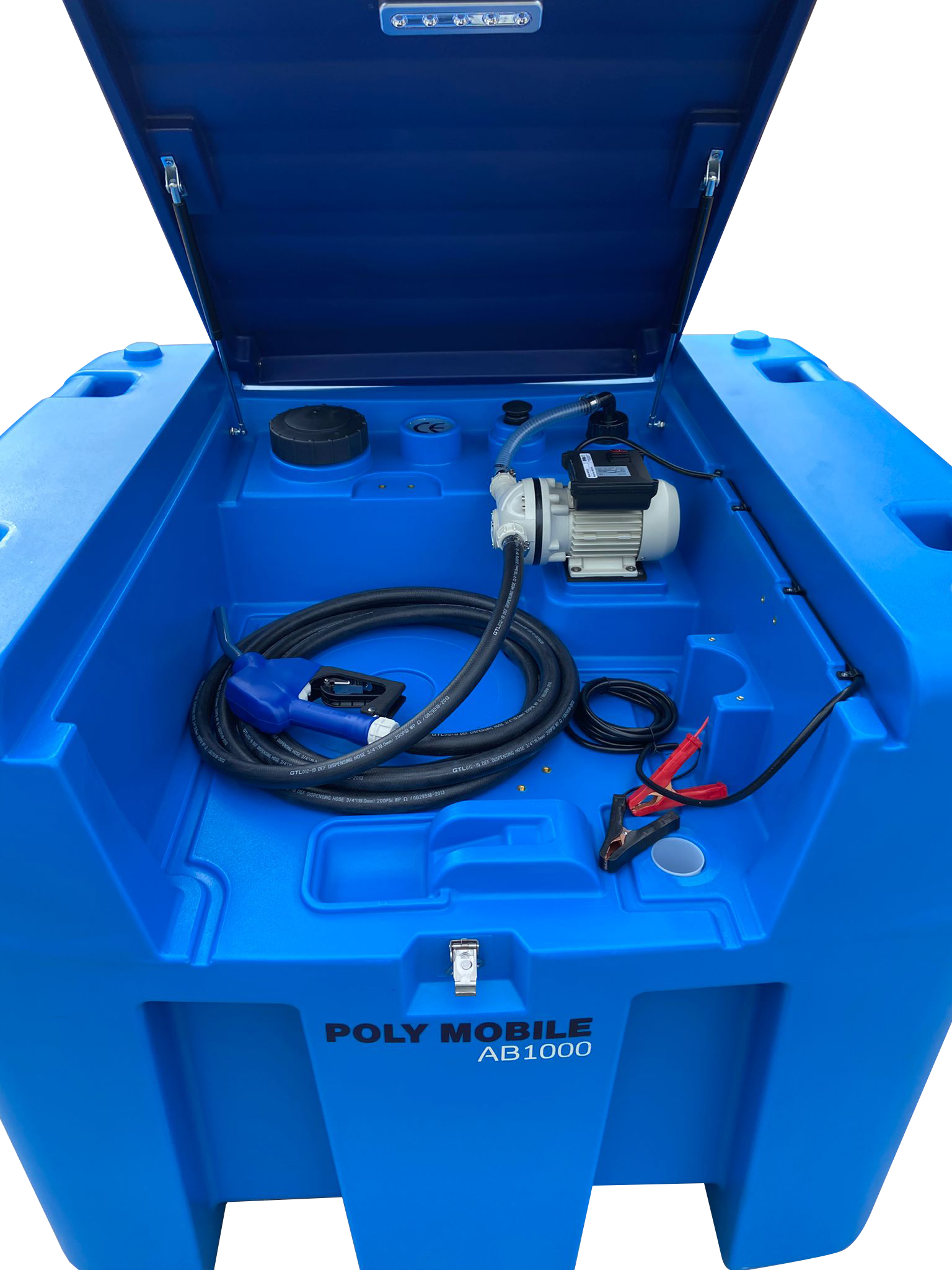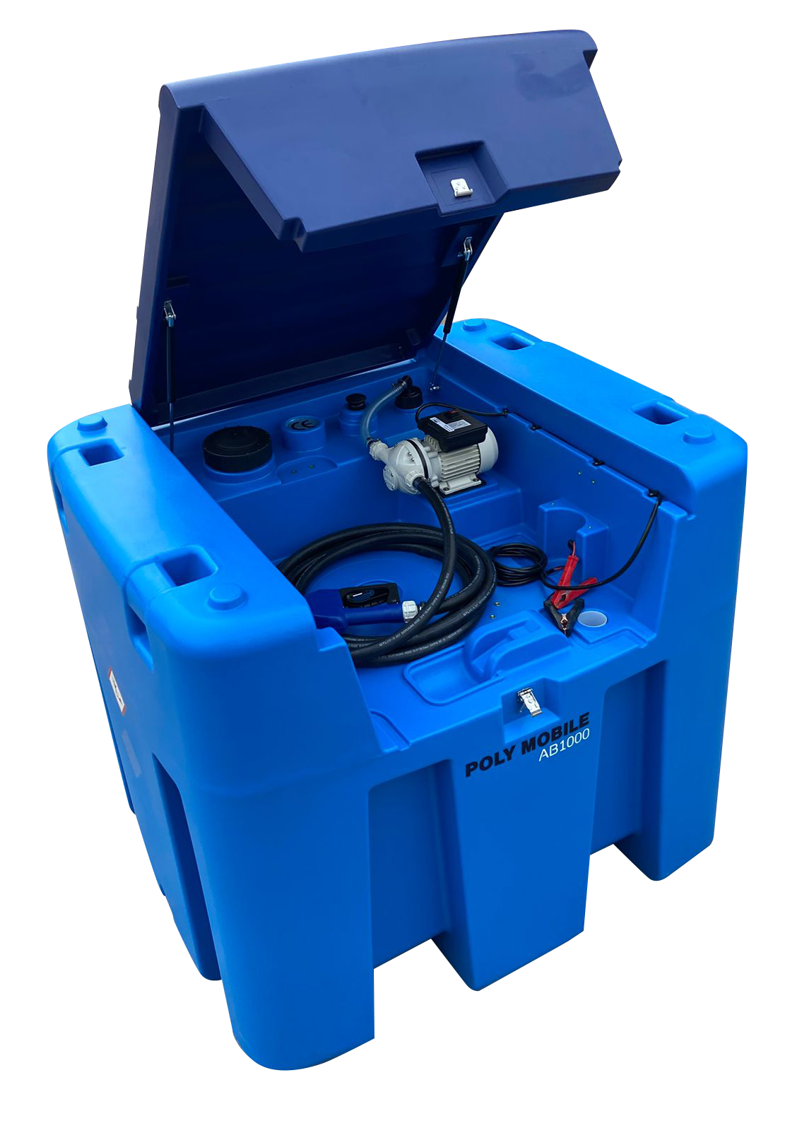 Il PMAB-1000 è un serbatoio portatile per lo stoccaggio ed erogazione di AdBlue/DEF, con capacità di 1000 litri. Realizzato in polietilene ad alta densità (HDPE), è equipaggiato con: