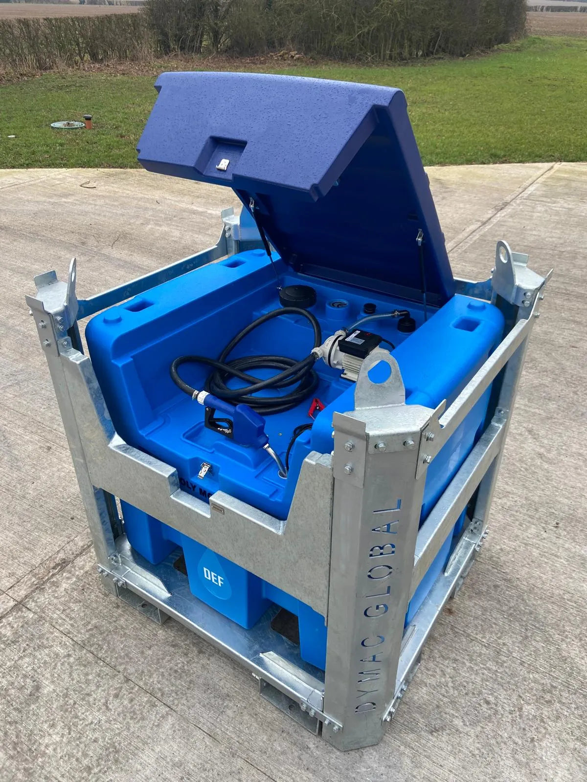 Il PMAB-GF-1000 è un serbatoio portatile per lo stoccaggio ed erogazione di AdBlue/DEF, con capacità di 1000 litri. Realizzato in polietilene ad alta densità (HDPE), è equipaggiato con: