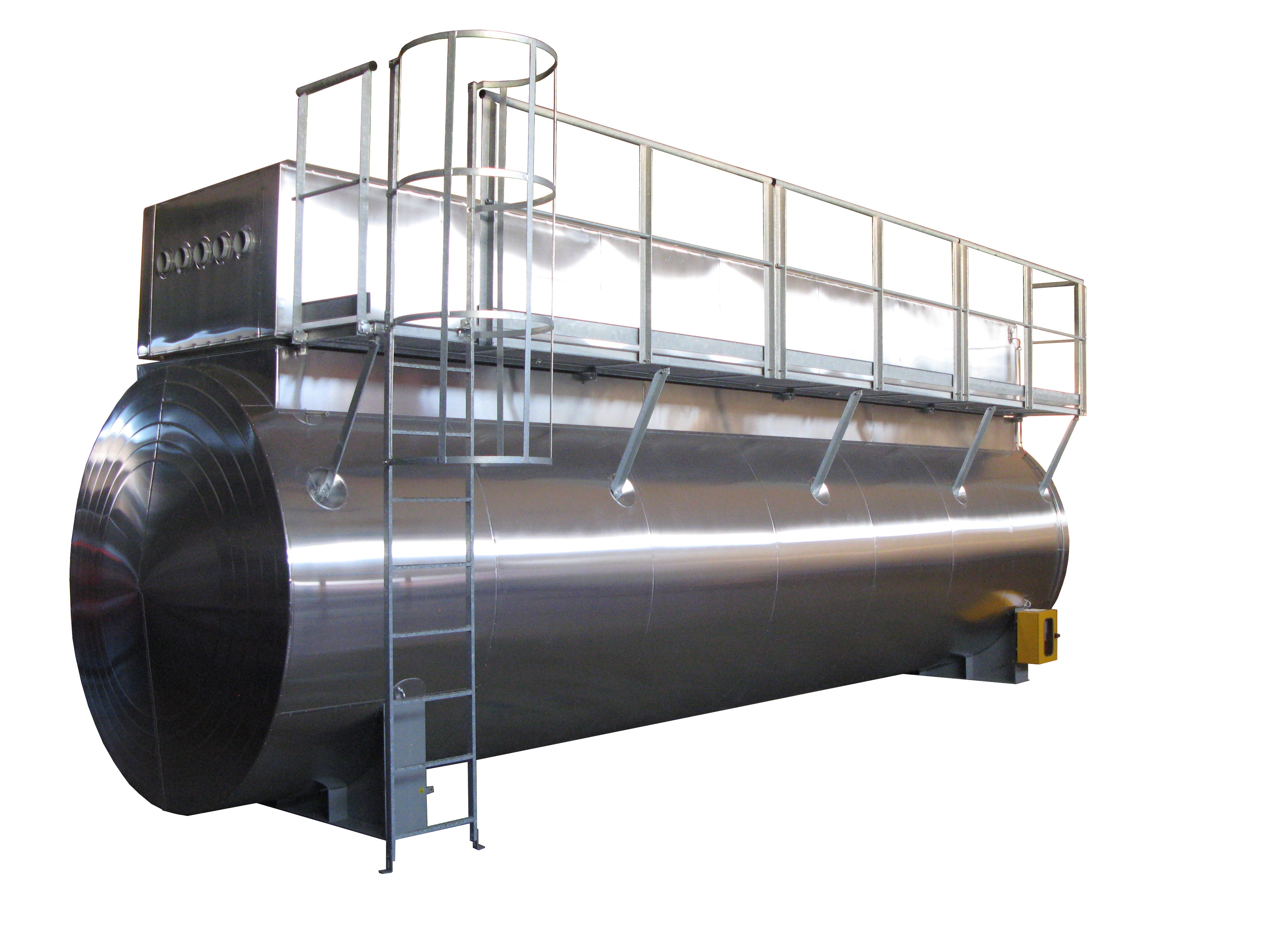 La doppia parete consente l’installazione di sistemi di monitoraggio dell’intercapedine, garantendo un controllo costante dell’integrità del serbatoio e riducendo i rischi ambientali. La verniciatura protettiva esterna assicura una lunga durata anche in contesti operativi intensivi.