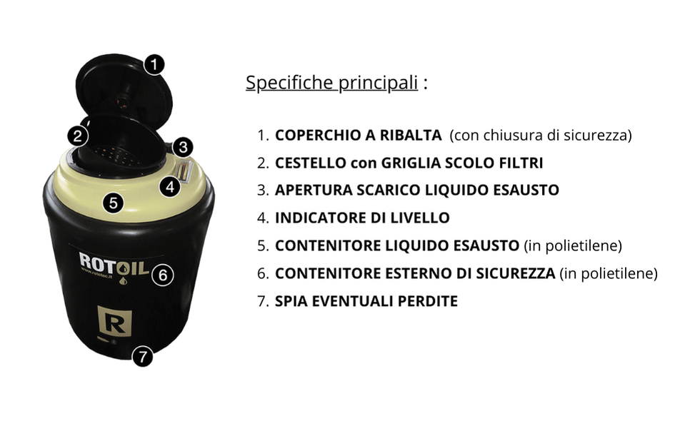 Formato da 2 vasche: una interna per contenere il prodotto, una esterna con funzione di vasca di sicurezza e contenimento. Completano il prodotto una bocca di scarico con coperchio filettato, un indicatore visivo di livello e un indicatore spia per eventuali perdite.